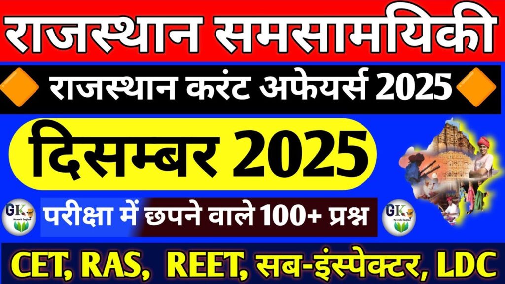 December Rajasthan Current Affairs 2025| RPSC, RSSB Read More »