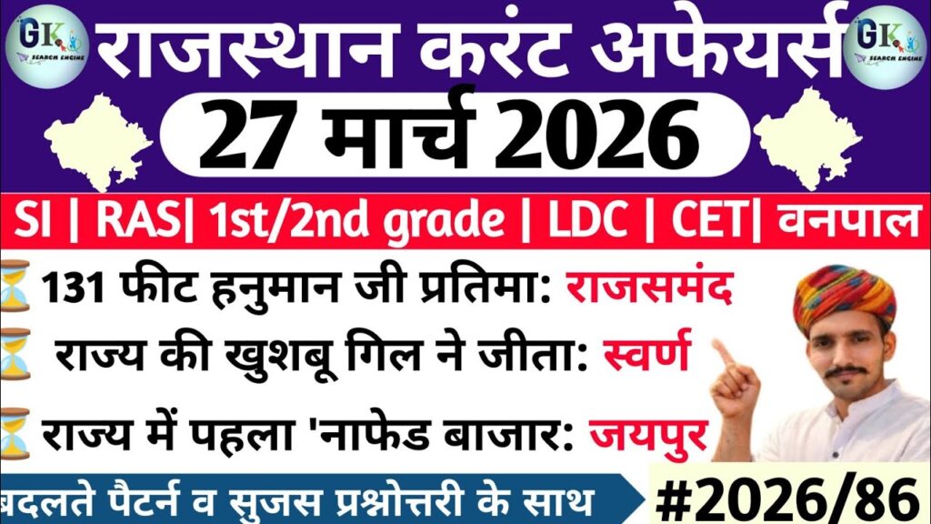 27 March Rajasthan Current Affairs 2026| RPSC, RSSB