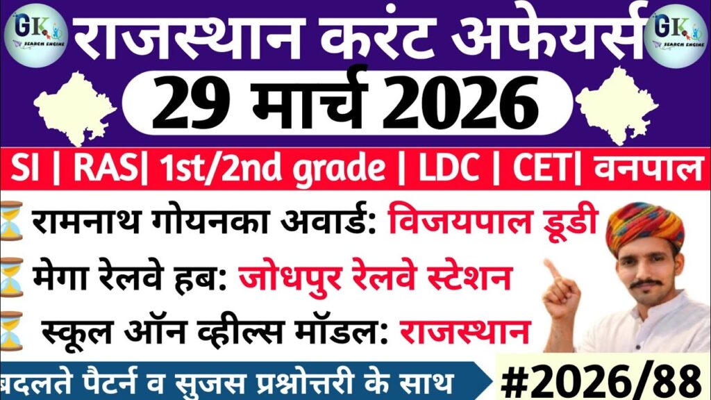 29 March 2026 Rajasthan Current Affairs | RPSC RSSB RAS REET Patwari SI CET