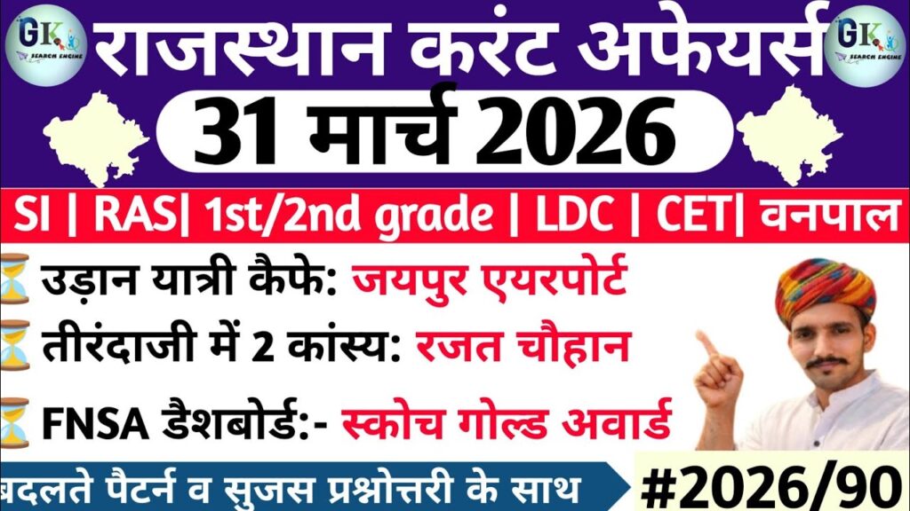 31 March 2026 Rajasthan Current Affairs |RPSC, RSSB, RAS, Patwari, SI, CET Read More »