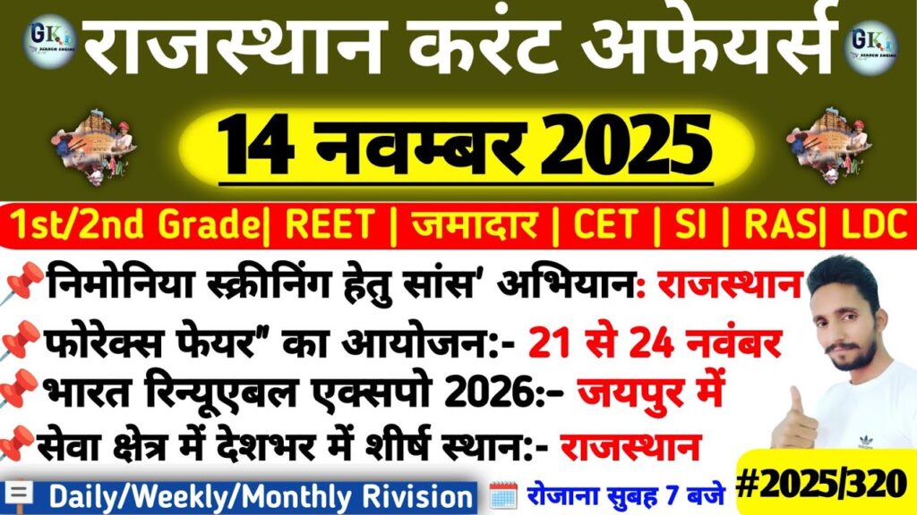 14 November Rajasthan Current Affairs 2025| RPSC, RSSB, SI Read More »