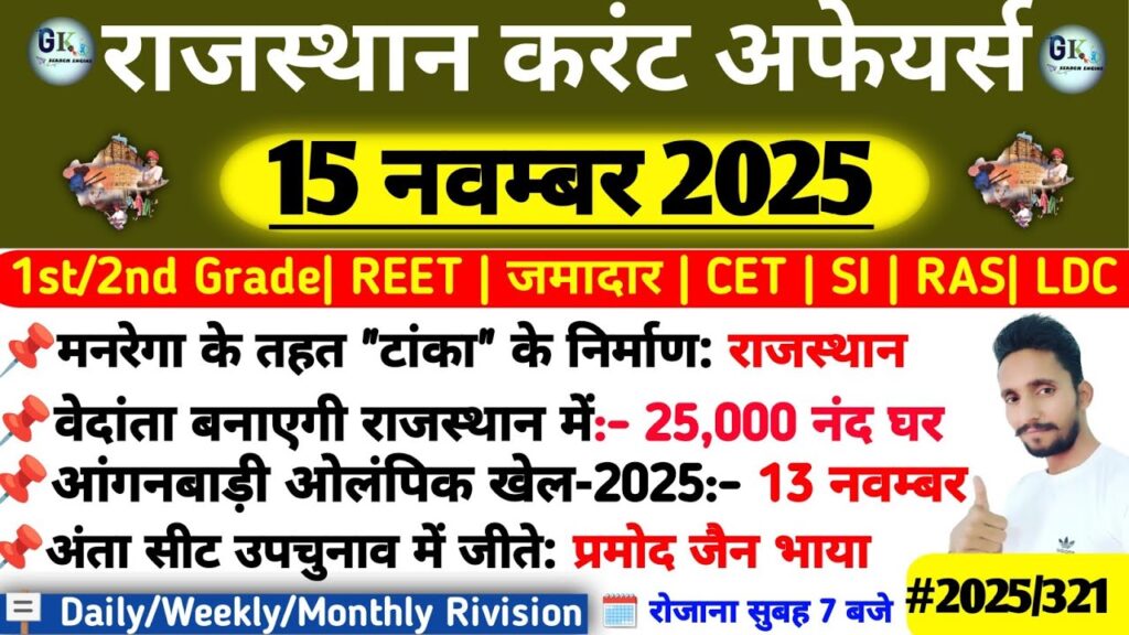 15 November Rajasthan Current Affairs 2025| RPSC, RSSB, SI Read More »