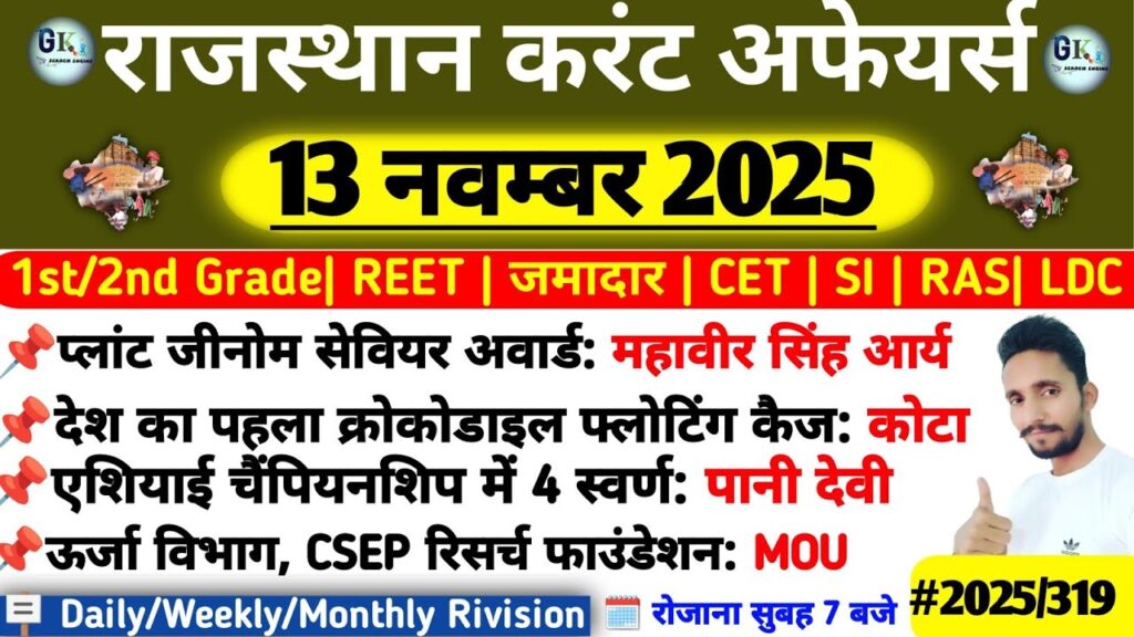 13 November Rajasthan Current Affairs 2025|RPSC, RSSB, SI Read More »