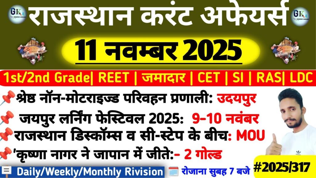 11 November Rajasthan Current Affairs 2025| RPSC, RSSB, SI Read More »
