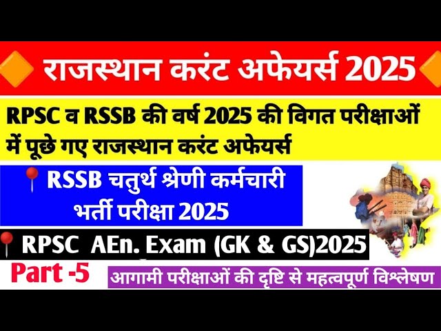 वर्ष 2025 में आयोजित परीक्षाओं में पूछे गए राजस्थान करंट अफेयर्स